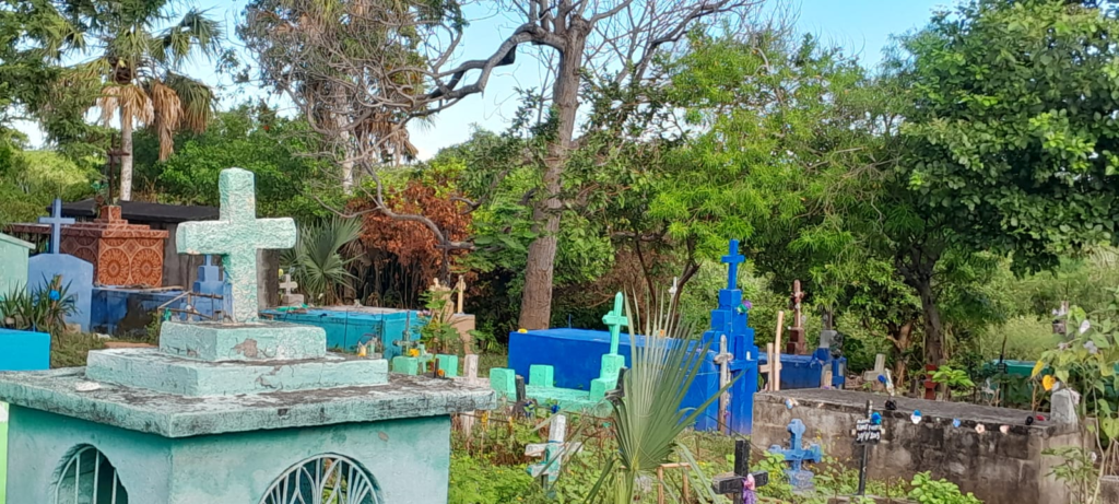 Resulta que antiguamente el cementerio se encontraba en lo que es la barra del Jiote y ha base que se inundó el agua del mar y la del rio empezó sacando todas las tumbas del cementerio las tumbas andaban flotando en el agua a causa de eso se destruyó el antiguo cementerio que estaba allí y decidieron hacer un nuevo cementerio en una parte donde no se inundara por eso fue que lo colocaron donde está actualmente y vinieron a enterrar algunas personas que andaban nadando en el agua y las tumbas las trasladaron donde esta efectiva mente , al pasar de los tiempos lo dieron como un patrimonio para sepultar los difuntos y actualmente se llama el tamarindal porque existen dos árboles de tamarindo que están en medio del cementerio que de ahí deriva el nombre, entonces desde la inundación para esta época es un lugar seguro para los difuntos.